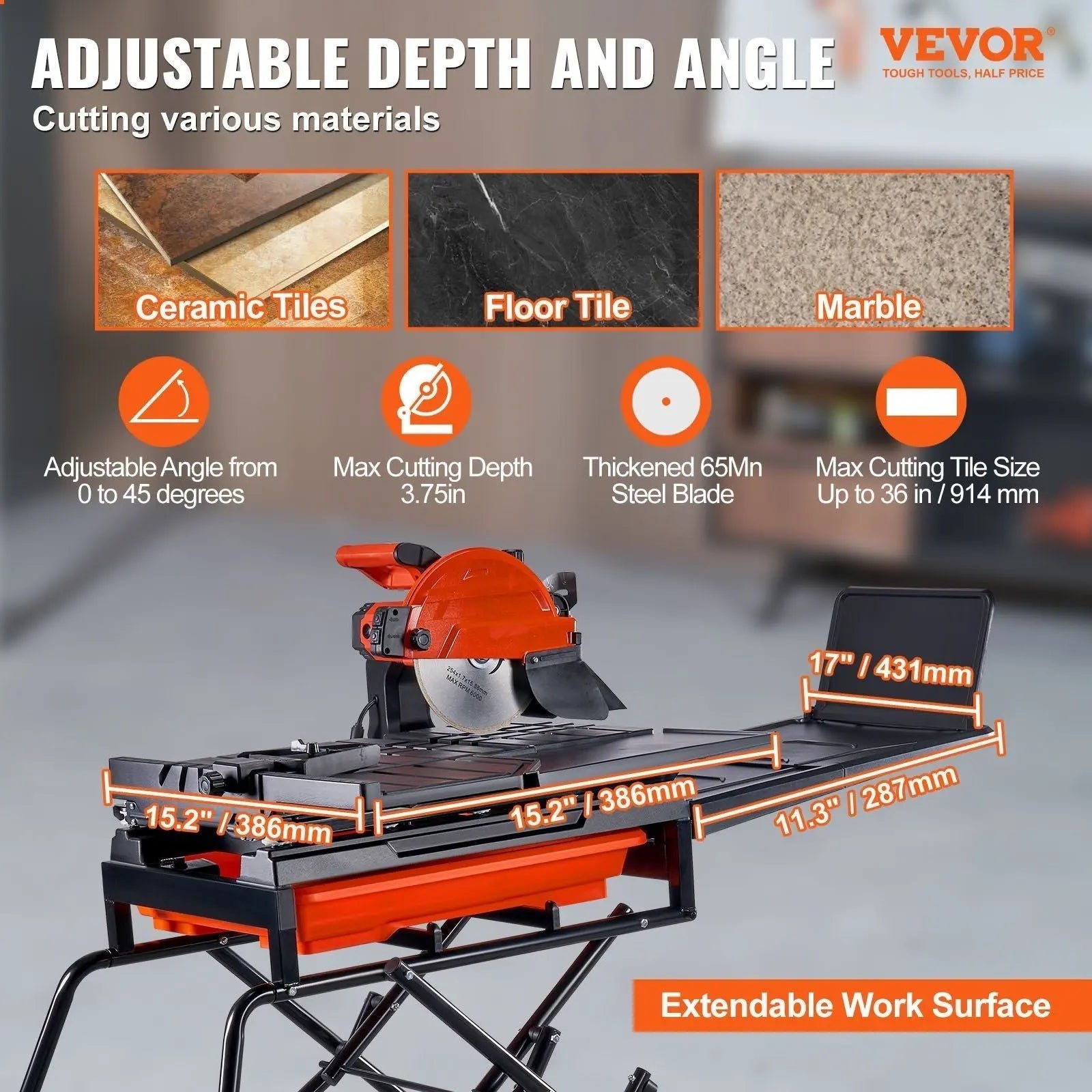 10″ Wet Tile Cutter, 4500 RPM Motor, Adjustable Stand Included, Precision Cutting Performance, DOBA-WTC10