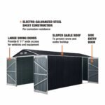 Air vents help to maintain good airflow no matter the season, as well as a sloped gable roof to help prevent snow and water build up on those cloudy winter days. L-shape brackets with sleeve anchor bolts installation make this structure easy to install on any solid wood platform or concrete slab. Immediately increase the value of your property by adding to it this metal shed which is only a fraction of the cost compared to building a similarly sized structure.