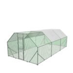 Roughly 200 sq-ft of space is covered by a heavy-duty galvanized steel frame that is also powder-coated for maximum protection against rust, corrosion and wear. PVC coated hexagonal wire mesh keeps your chickens in and predators such as hawks, coyotes, dogs and cats out so you can get the most out of their long, healthy lifespans.