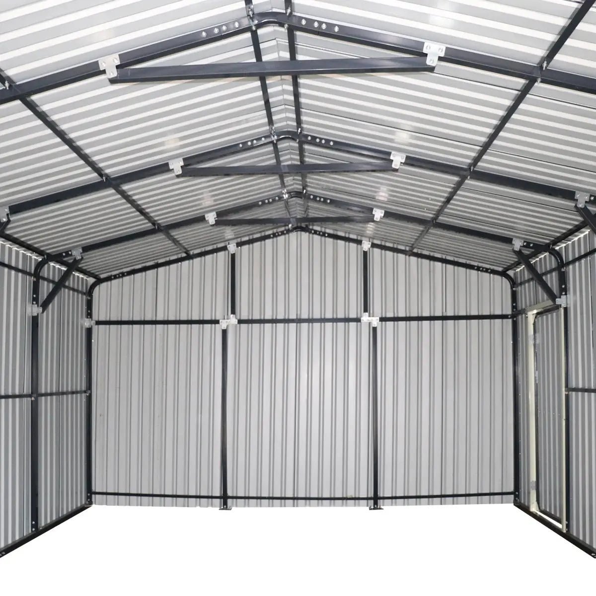 The TMG-MS1624 Metal Garage Shed with Double Front Doors is a heavy duty, spacious, robust steel structure that can be used as a garage, workshop or storage building. Fully enclosed for year round protection of your boat, RV, pickup, off-road vehicles and farm equipment.