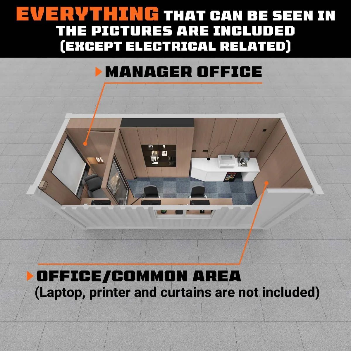 The heavy-duty galvanized frame is constructed to thrive in even the most remote environments. Integrated elements include high-density foam insulation, wood-pattern wall panels, three-layer tempered glass, aluminum alloy doors and windows, and PVC woven carpeting. LED strip lights exude an ambiance of professionalism, and a foldable workstation adapts to all of your professional needs. These units truly serve to optimize your efficiency and redefine the idea of work mobility.