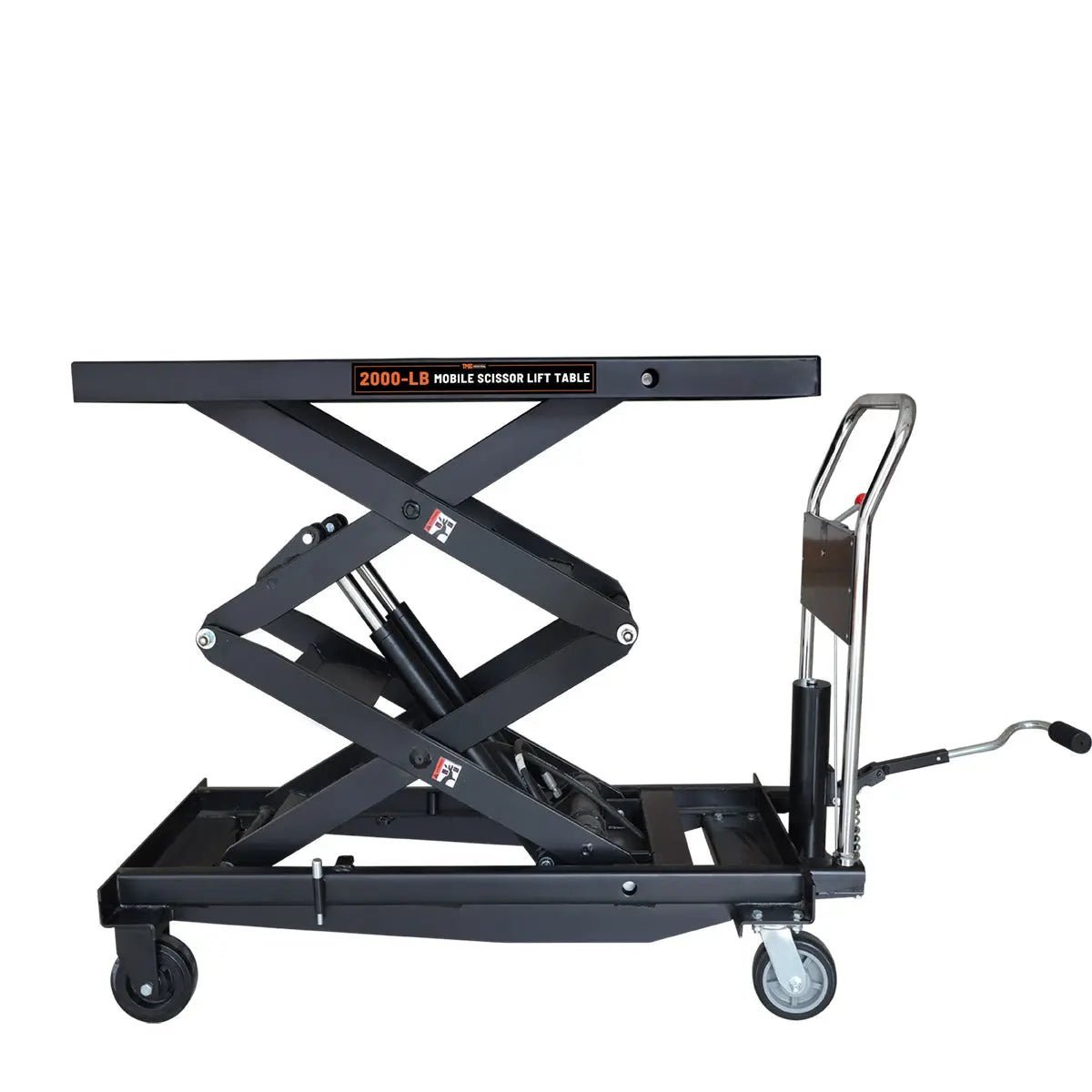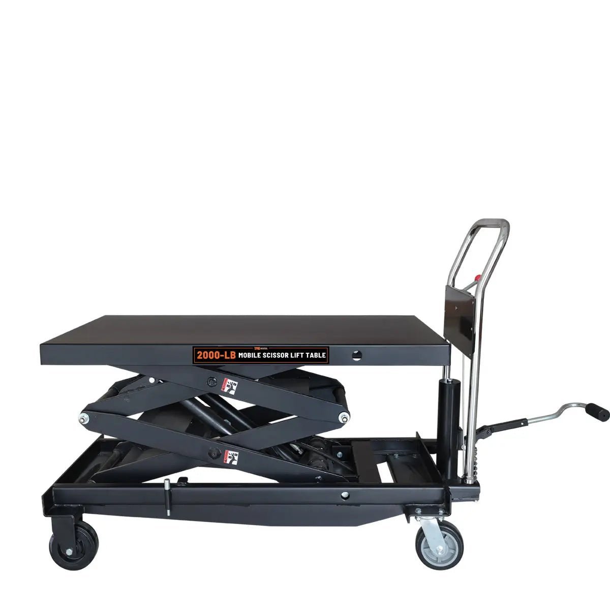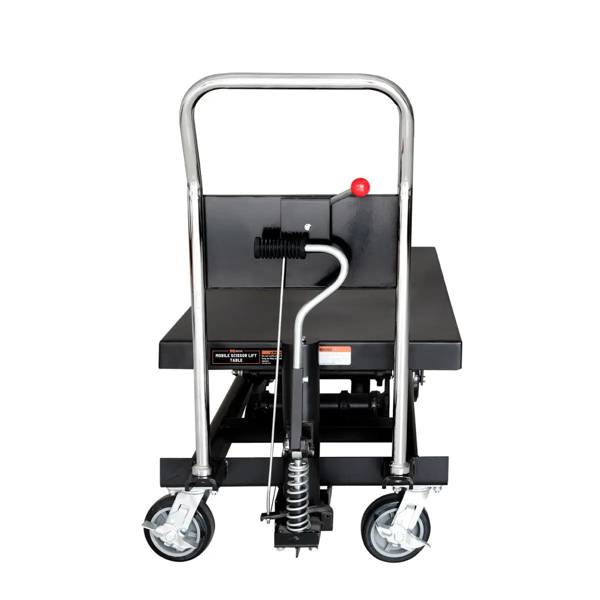 A foot pedal allows you to operate the hydraulic tabletop with ease, and lowers the risk of injury by eliminating the need to bend down and manually adjust objects. Simply pump the table up to your desired height, and use the conveniently located handle-mounted pressure release to have total control over the descending speed.