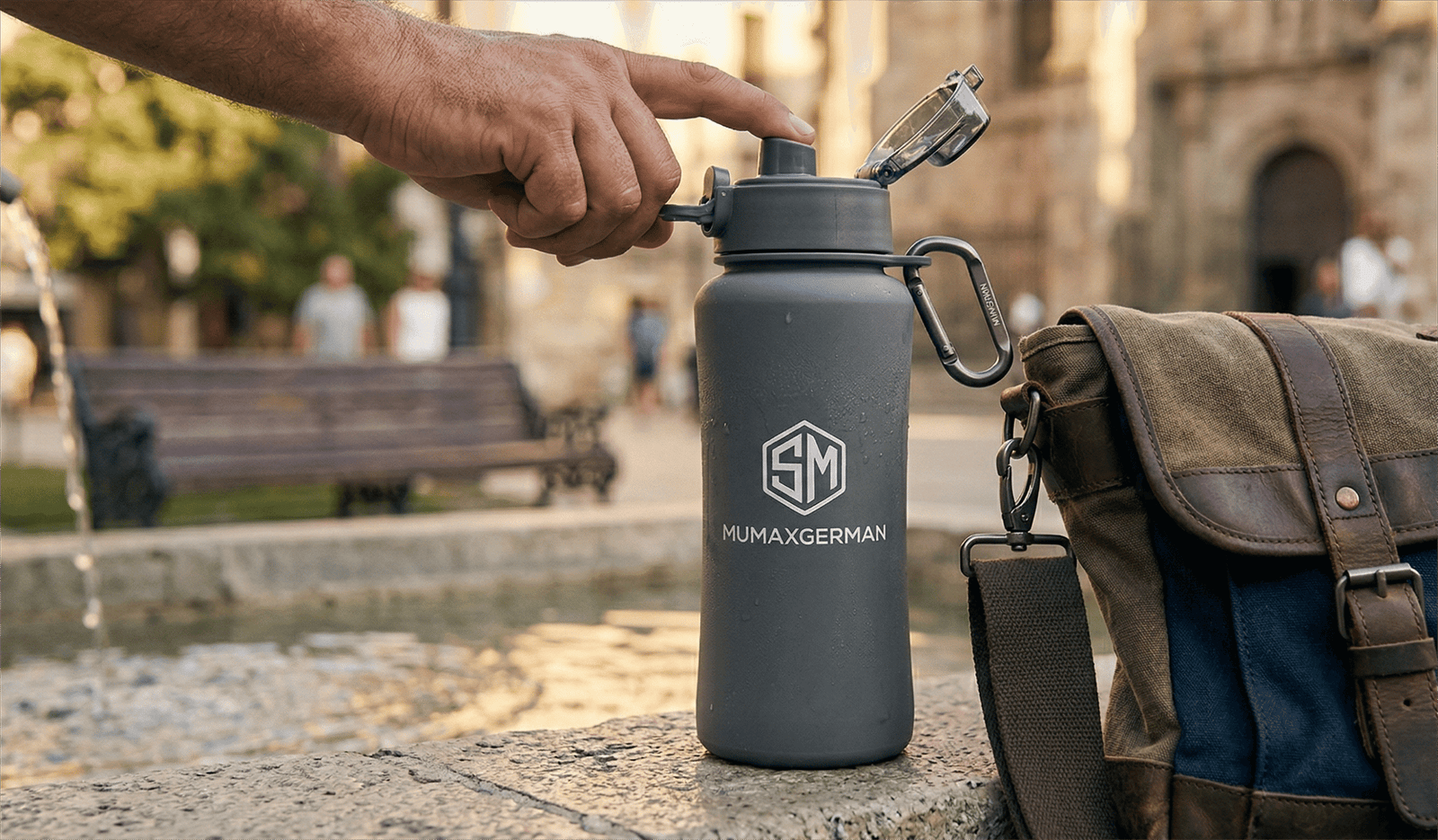 Leak-Proof Engineering and Hygienic Sipper Lid Convenience never comes at the cost of security with MUMAXGERMAN. The FlexiTravel features a precision-engineered, rigid polypropylene neck and lid assembly that provides structure and a 100% leak-proof seal. The hygienic flip-top cap covers the sipper spout, protecting it from dirt, dust, and grime, ensuring a clean drinking experience every time. The cap locks securely into place with a satisfying click, preventing accidental openings inside your bag. The wide-mouth opening when the cap is removed allows for effortless filling, adding ice cubes, and thorough cleaning, ensuring optimal hygiene.
