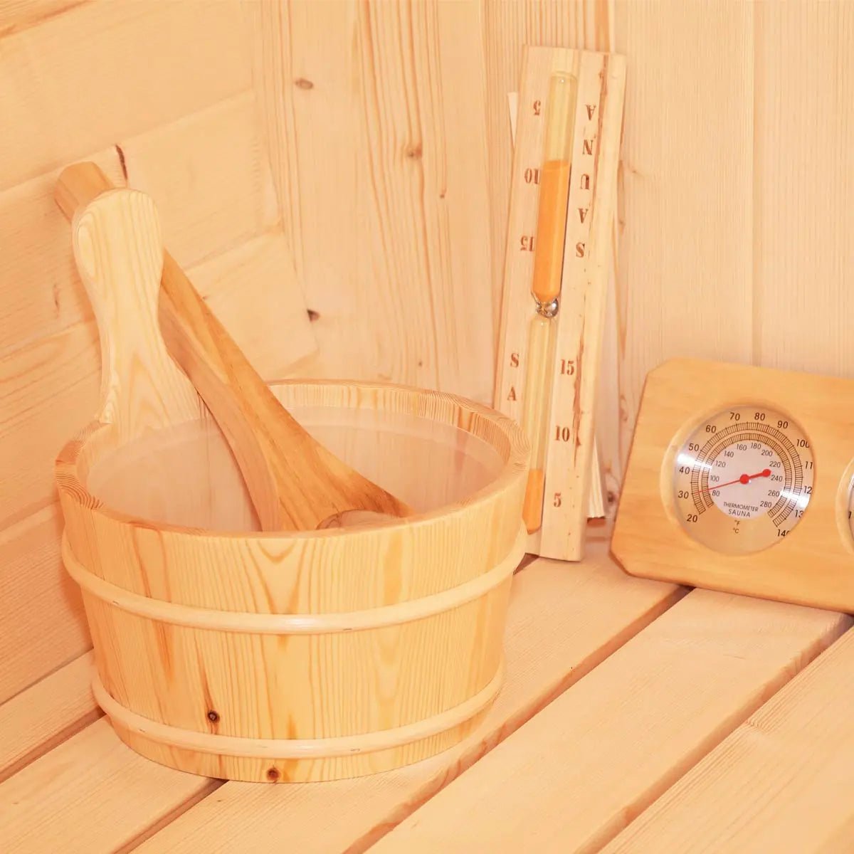 Built from strong, rustic cedar wood, this sauna provides a classic cabin look and contemporary feel to any part of the property. Enclosed and insulated design offers you peace and quiet while you enjoy the outdoors from the toasty comfort of your own exclusive getaway haven.