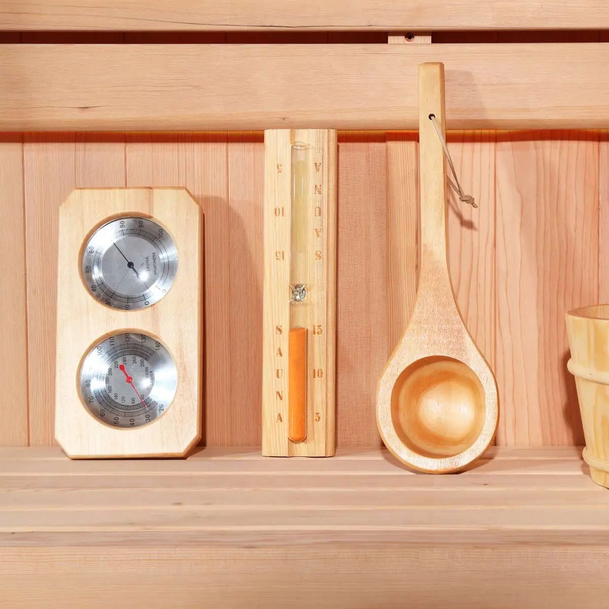 Built from strong, white pine wood, this sauna provides a classic cabin look and contemporary feel to any part of the property. Enclosed and insulated design offers you peace and quiet while you enjoy the outdoors from the toasty comfort of your own exclusive getaway haven.
