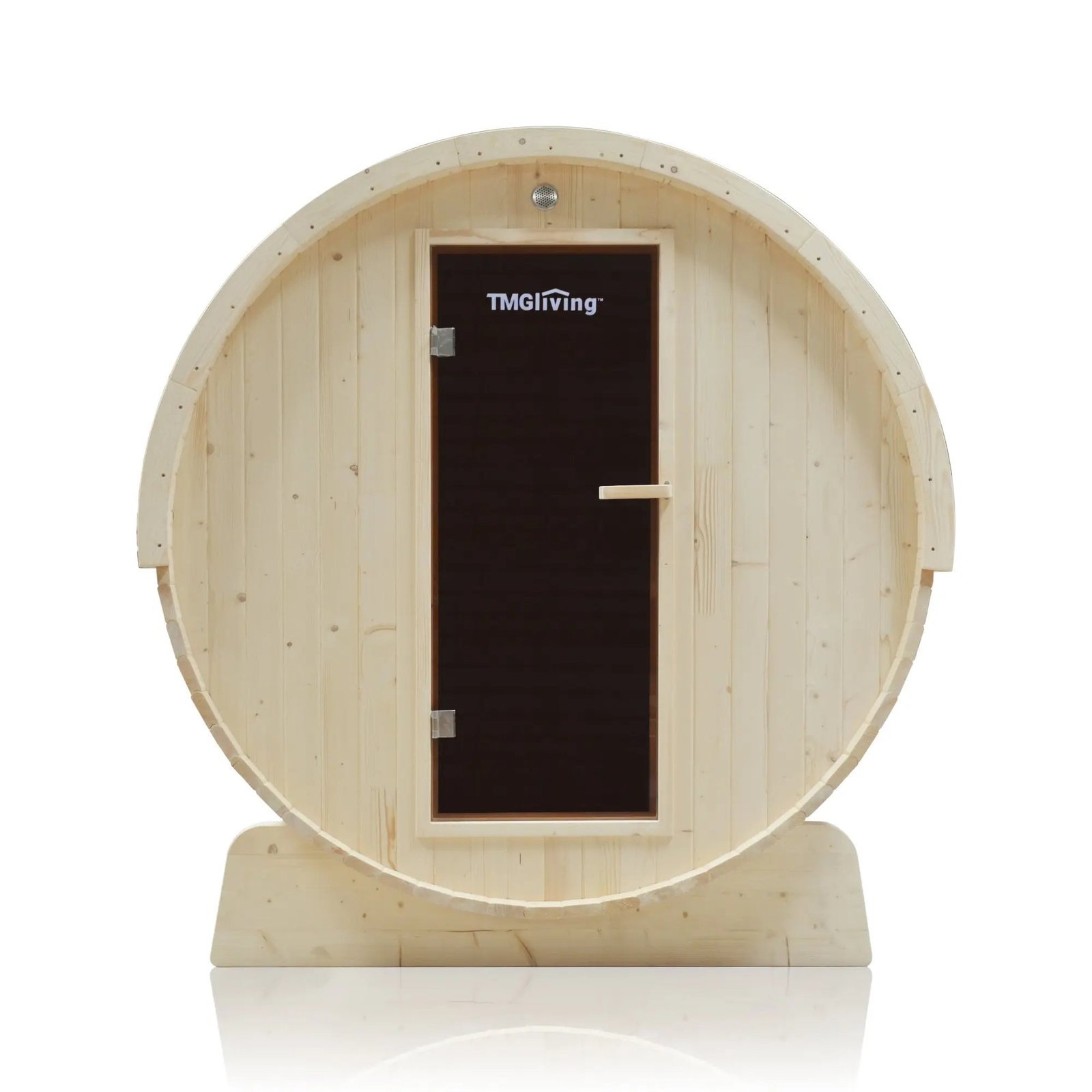 TMG LIVING Outdoor White Pine Barrel Sauna, Three Person, Tempered Glass Door, TMG-LSN41