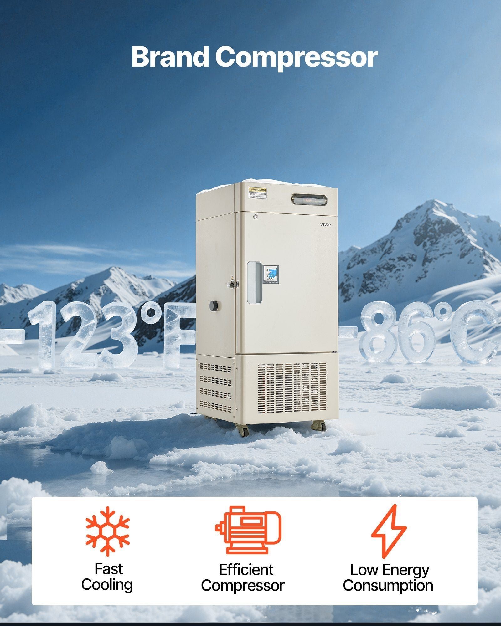 Ultra-Low Temperature Performance: An efficient single-stage compressor for the ultra-low temperature freezer enables fast cooling and energy saving. Temperature range from -40°F to -123°F provides flexible storage for sensitive lab samples