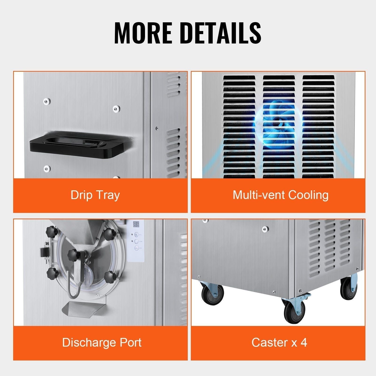 Solid and Durable: Constructed with high-quality SUS304 stainless steel, the hard serve commercial ice cream maker is sturdy, rust-resistant, and easy to clean, ensuring longevity and food safety.